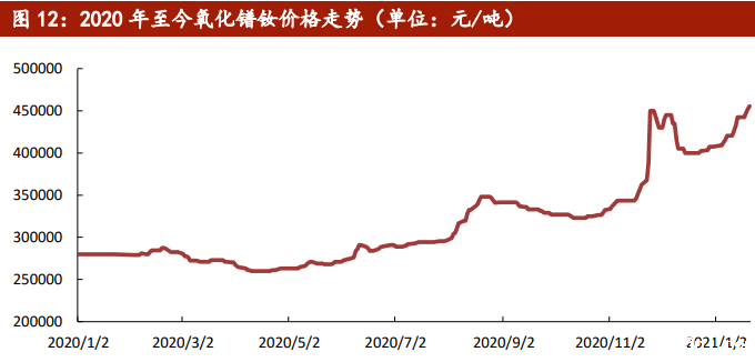 下图为2020年1月至2021年1月氧化镨钕价格走势图