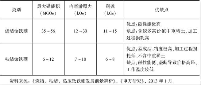 烧结钕铁硼和粘结钕铁硼性能对比(最大磁能积 内禀矫顽力 剩磁 优缺点)