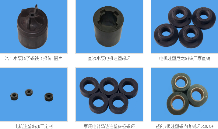 这是来自百度百科的介绍,注塑磁是一种新型的复合永磁材料,注塑磁体因其能够加工成复杂的形状而且精度高被作为高档的磁性材料获得广泛的应用,主要在汽车、办公自动化、传动等领域,具体产品有:激光打印机、复印机、传真机的磁辊,电机马达中的永磁等。