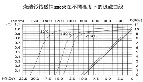 下图为烧结钐钴磁铁smco5在不同温度下的退磁曲线